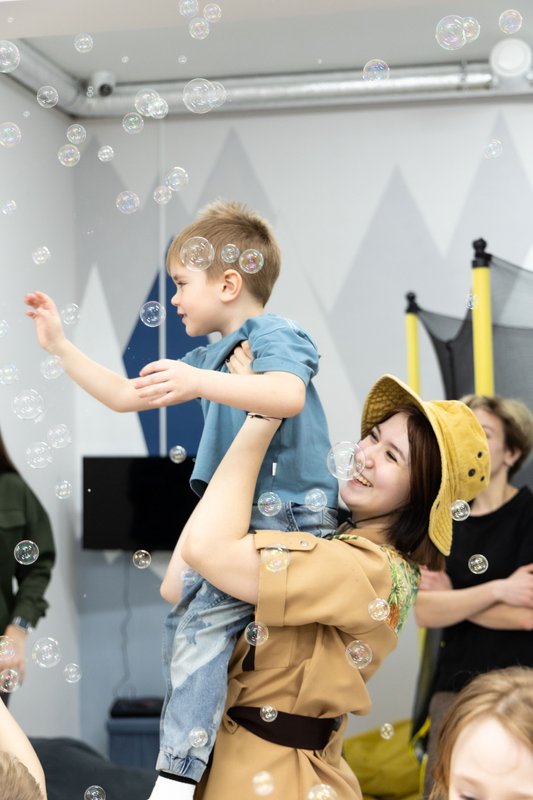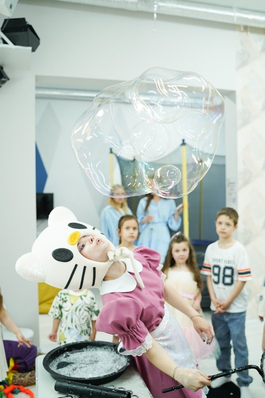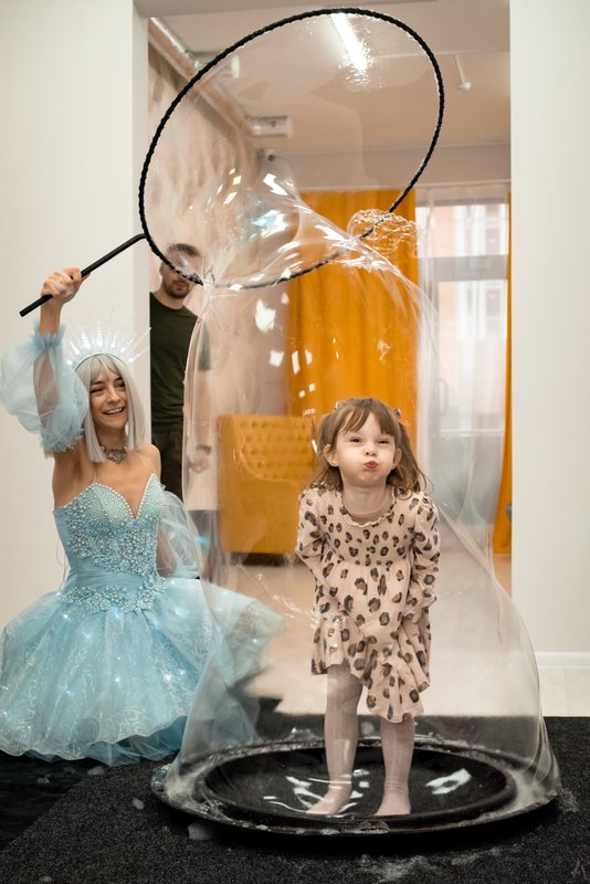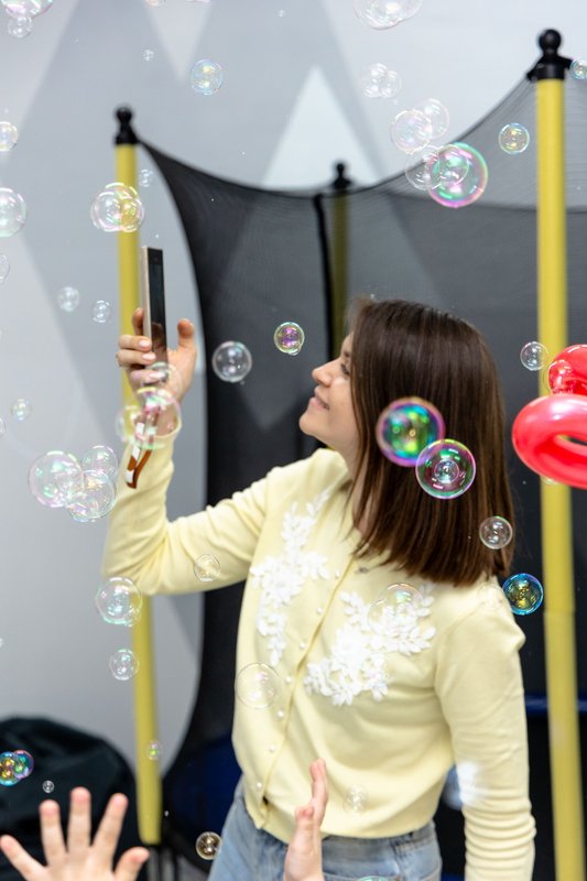 Детям понравилась фотостудия, особенно мыльные пузыри и батут.